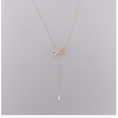 Swarovski 施华洛世奇 20新品 LIFELONG BOW系列 女士玫瑰金色仿水晶蝴蝶结Y型浪漫项链 5447082