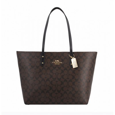 【包邮包税】COACH/蔻驰 【20春夏新款】女士卡其色经典C纹印花大号托特包单肩包手提包女包 F76636IME74