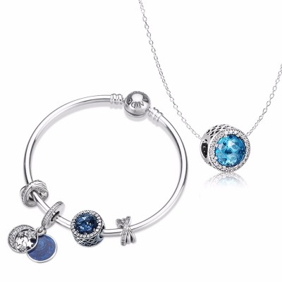 【情人节礼盒套装】PANDORA/潘多拉 情人节套装 QRJ-2 手链手镯项链套装 蓝色繁星童话套装